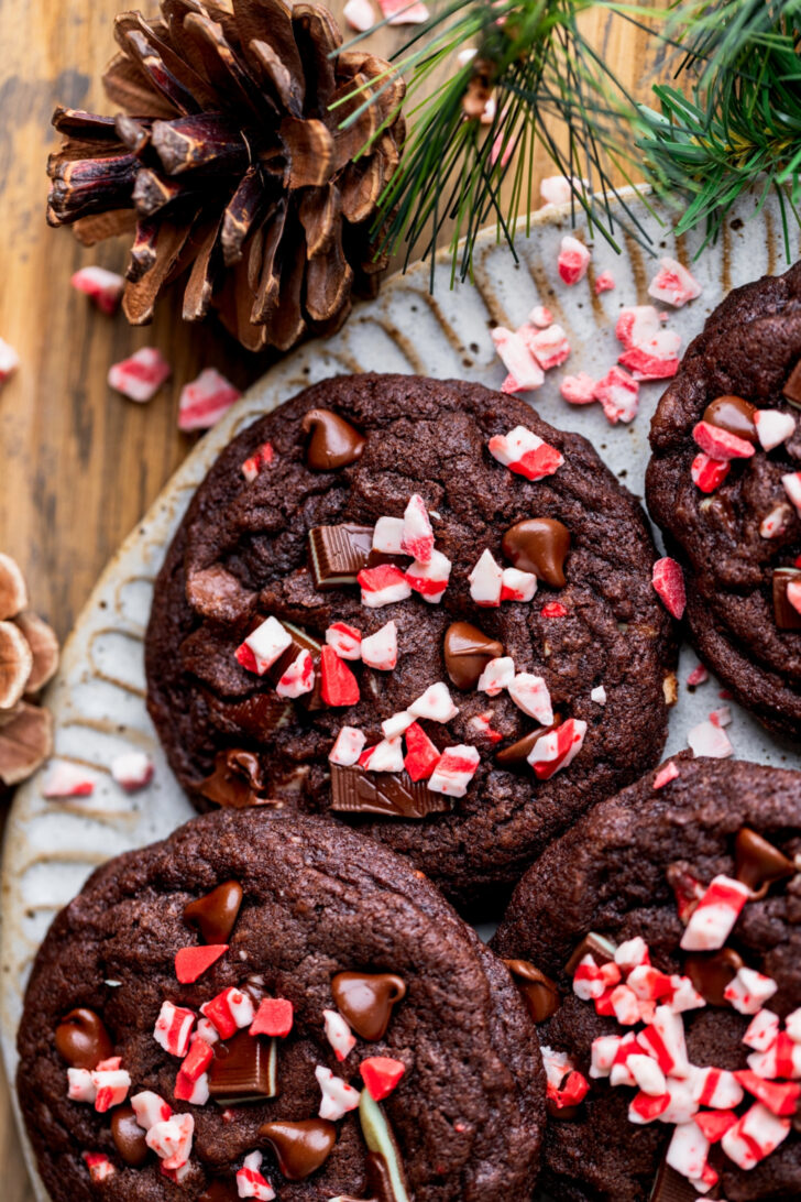 These chocolate peppermint cookies are a great Christmas cookie! These are a chocolate cookie full of chocolate chips, Andes mints and Andes peppermint chips.